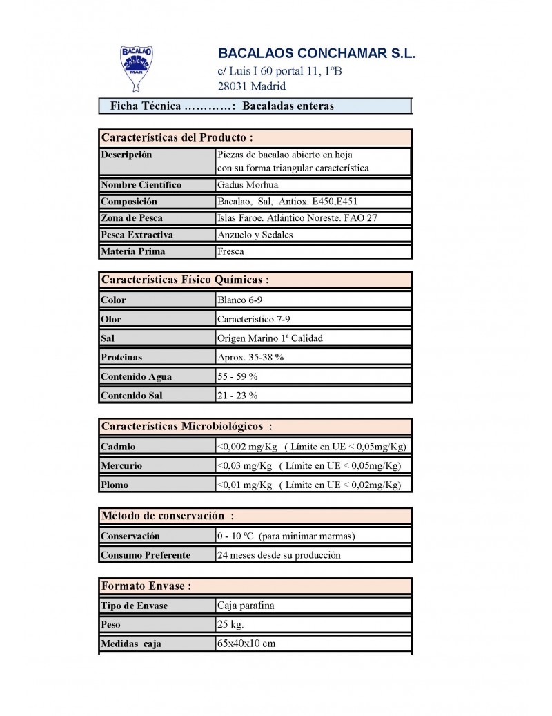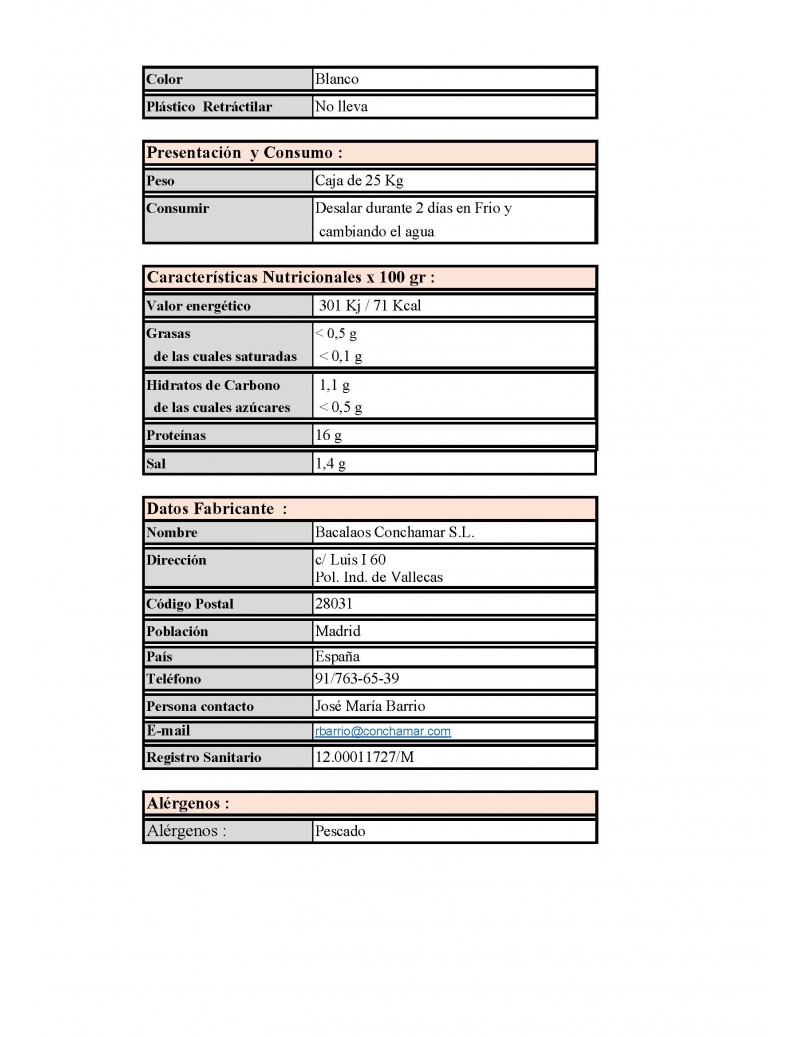 Bacalao, Sal, Antiox. E450,E451