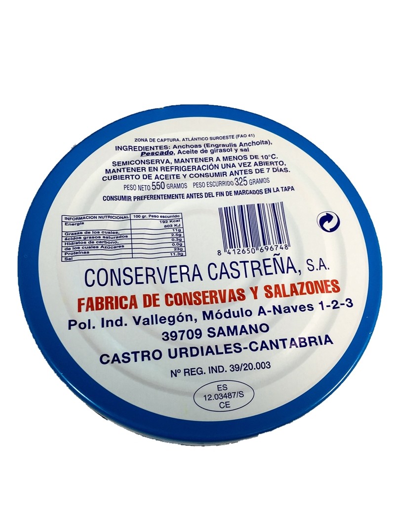 Fabricado por Conservas Castreña de Castro Urdiales Cantabria